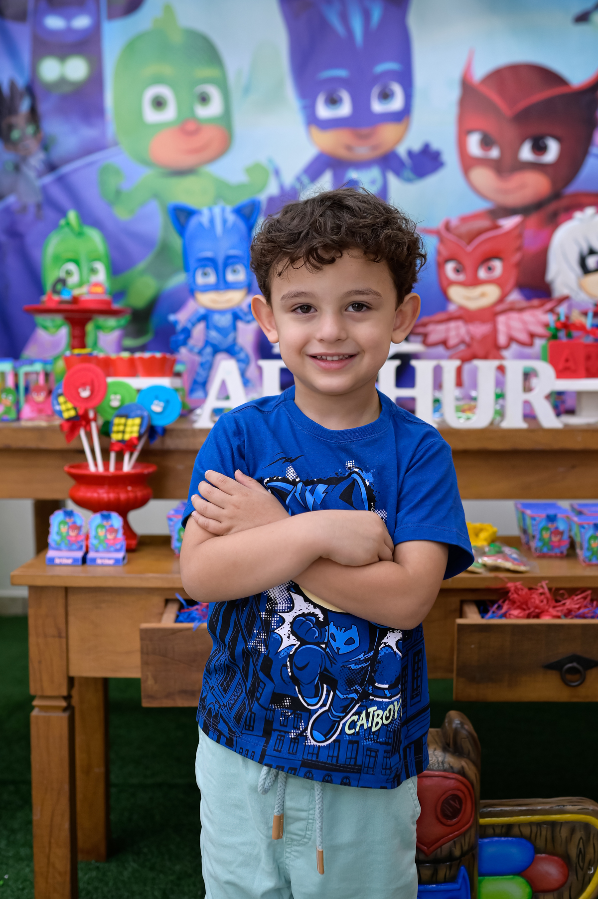 Essa linda festa infantil, teve por tema PJ Masks, que contou com a presença da Jd Encantado Personagens Vivos, animando toda a criançada.