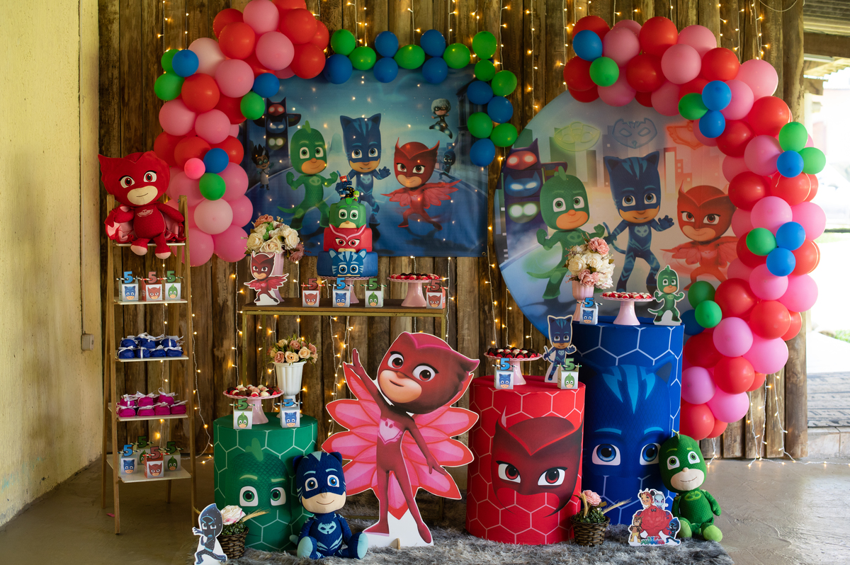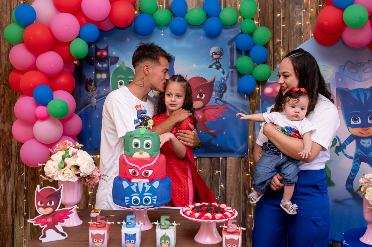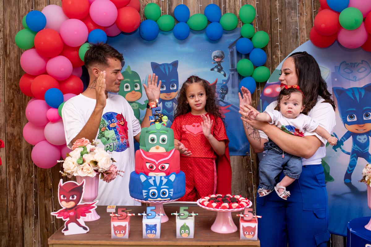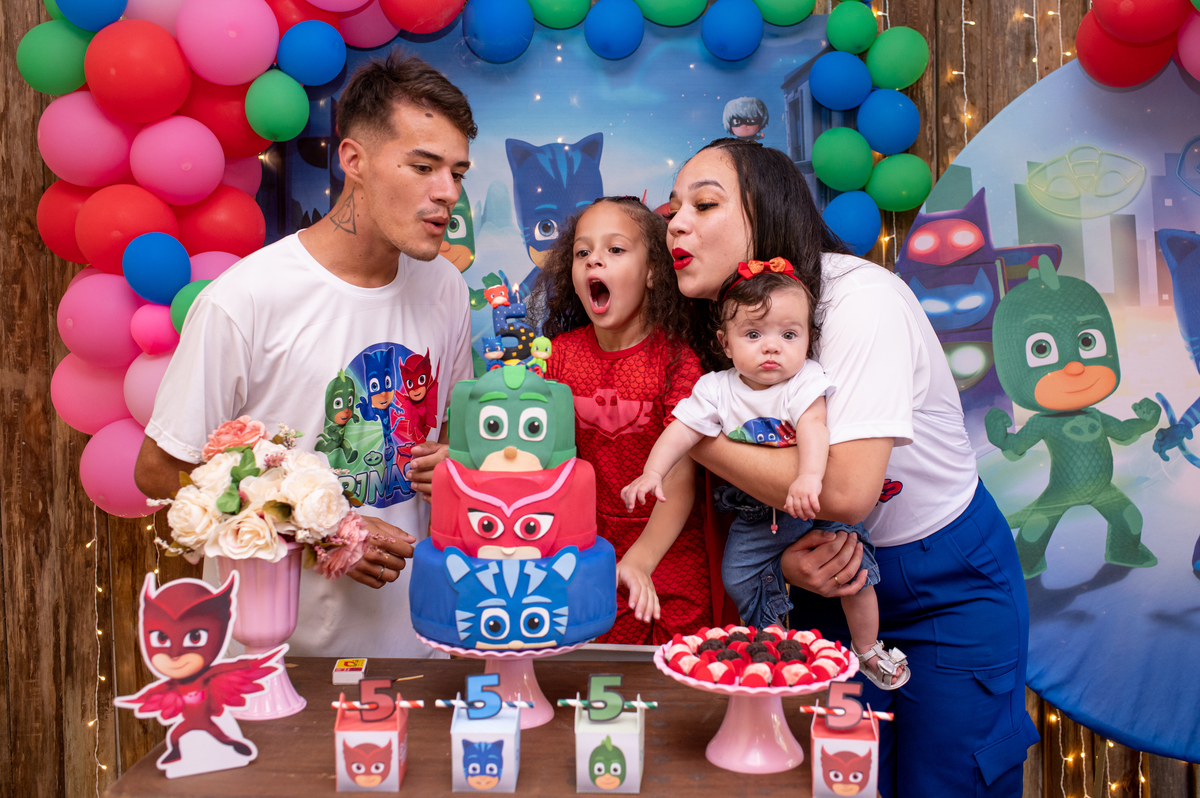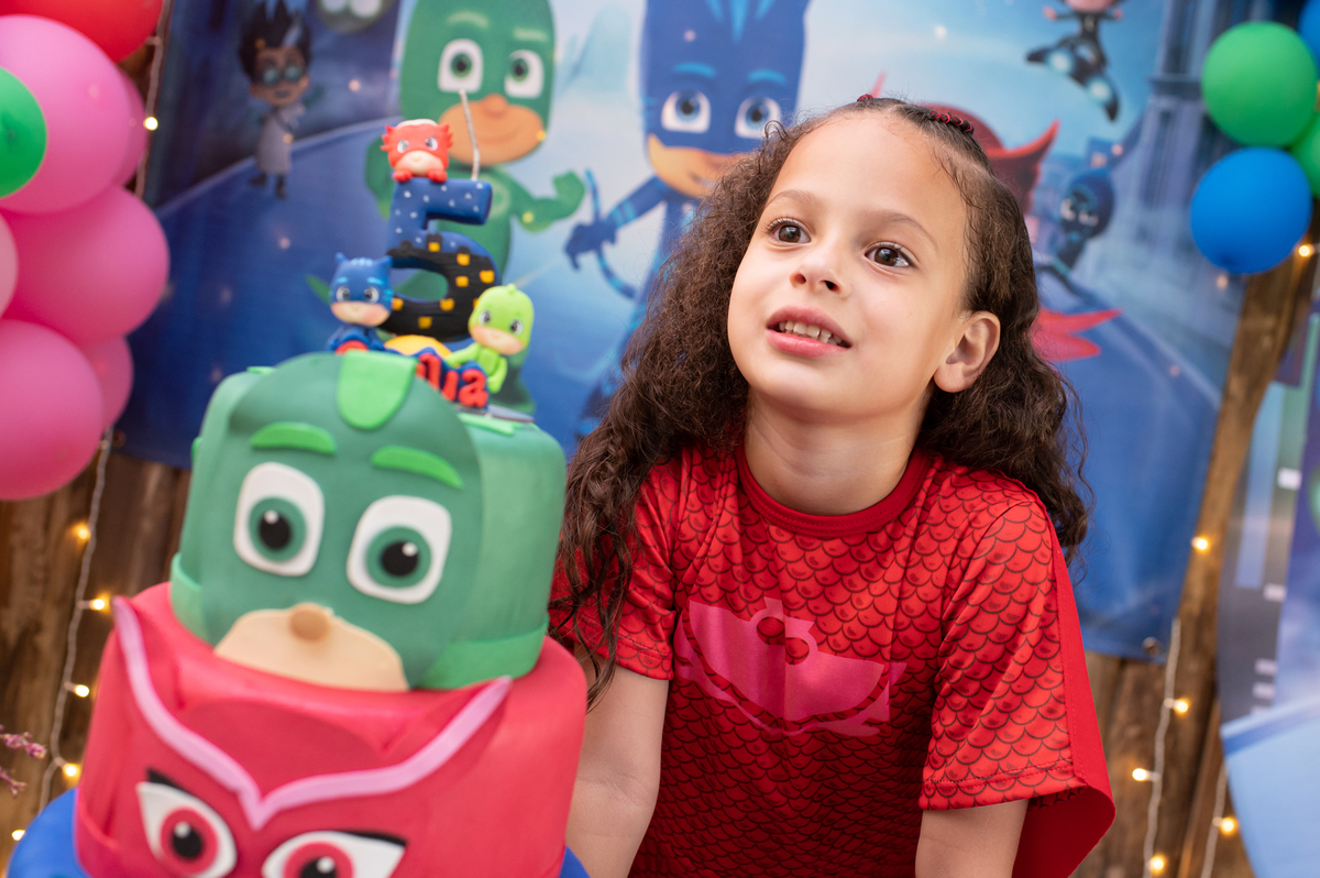 A piscina e a cama elástica foi a atração principal, o tema queridinho no momento Pj masks, ela queria tanto aproveitar cada segundo que não queria cantar parabéns rs.